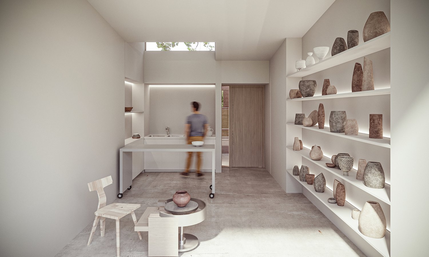 Providing the New Harmony Clay Project, a non-profit artists residency and educational center, with a new home that can serve its evolving needs and seeing to it that the artistic community has the assets it needs to flourish consists of the restauration of an existing pottery studio and the addition of a series of individual studios and exhibition areas.